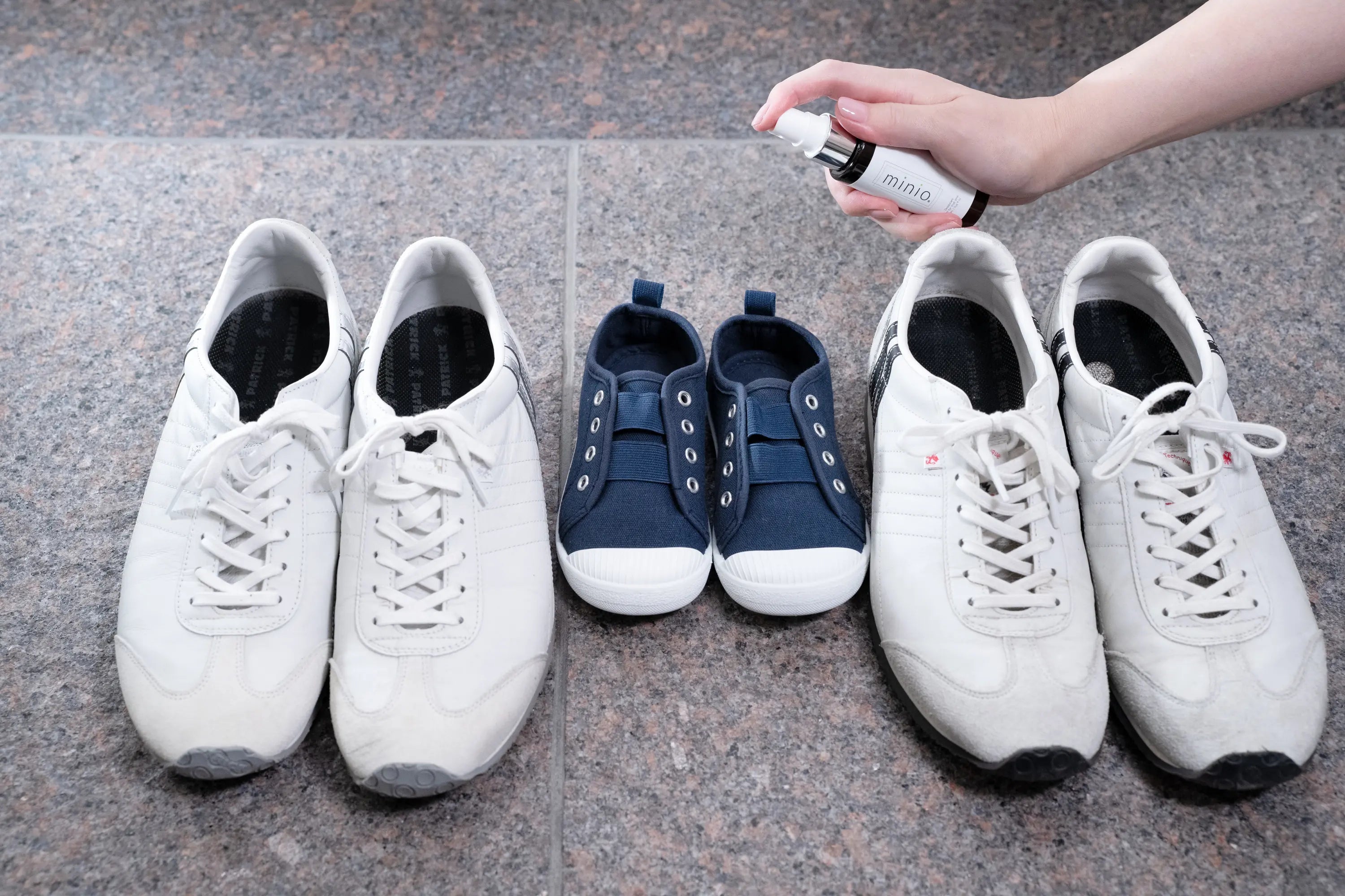 除菌・防カビ効果は、足のにおいにも有効なため、『ニオイが気になる靴』へスプレーすることで、靴に染みついたニオイを抑えることができます。